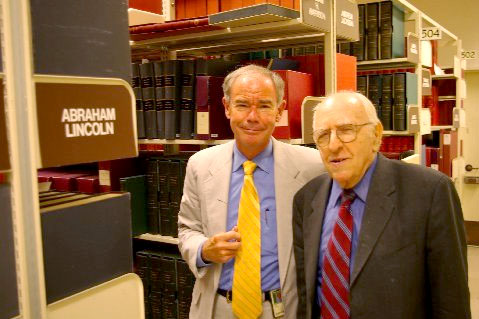 Frank and I visited the Manuscript Division of the Library of Congress yesterday. We were invited to witness the process of unpacking Frank's boxes, now well underway; and the sorting of thousands of pages of materials into an index or "Register". Frank's boxes were aligned on long sorting tables.